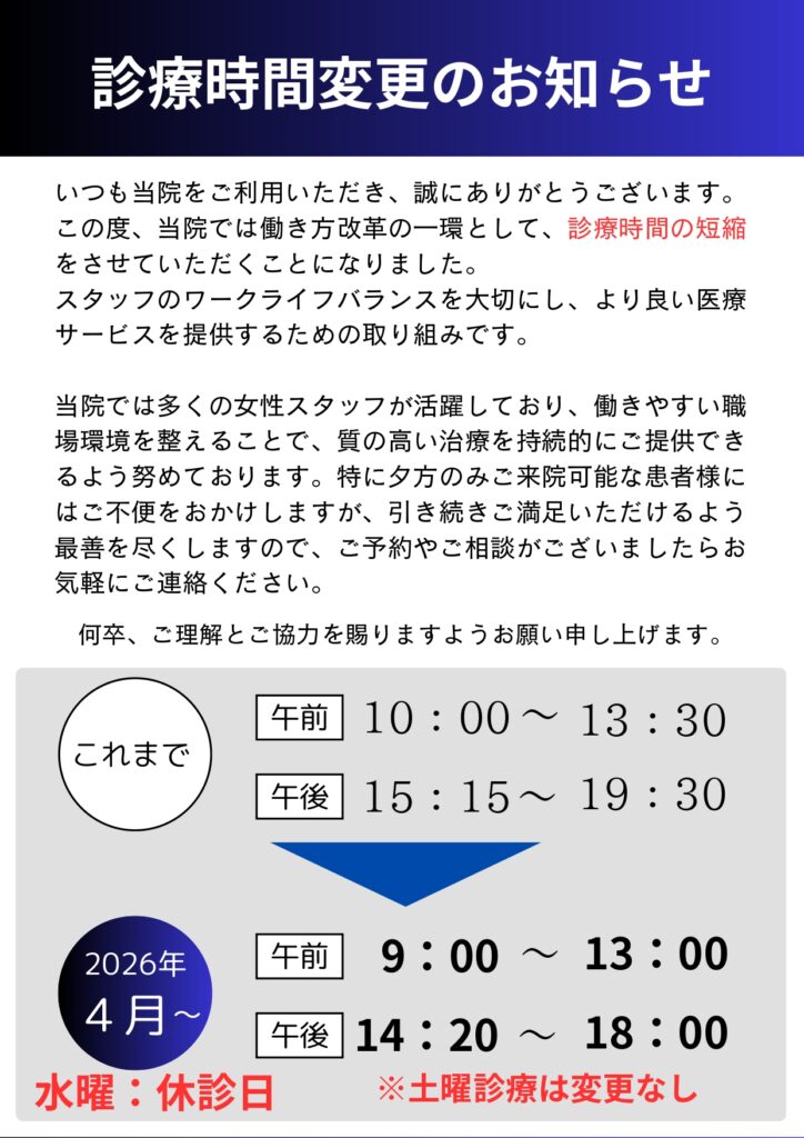 日曜・祝日臨時の休診日などはお知らせをご覧ください。